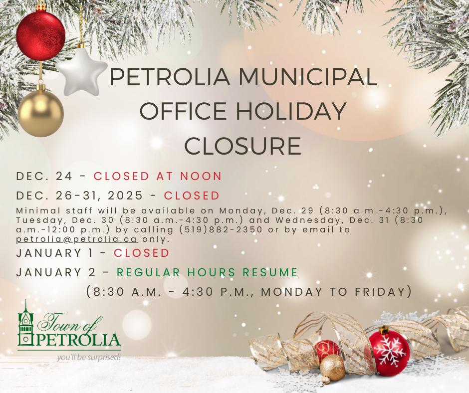 Christmas in the Park will take place in Victoria Park, Petrolia on Friday, December 5, 2025. We are excited to welcome our Service Clubs, as they are all preparing for the famous (and friendly!) chili cookoff! Families are invited to the park for chili and more starting at 6:00 p.m.