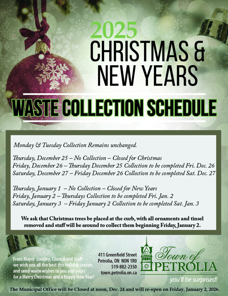 Wednesday, December 24th – No Collection (Wednesday’s no collection in Petrolia)