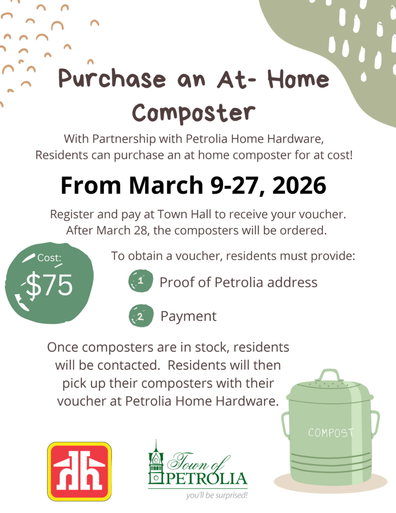 Through a partnership with Petrolia Home Hardware, residents can purchase an at-home composter for cost each Spring.